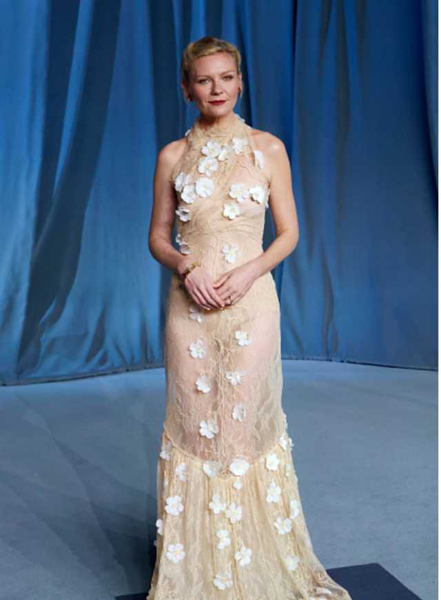 كريستين دانست تتألق بالدانتيل والورود البيضاء بتوقيع تيفاني في حفل الأكاديمية