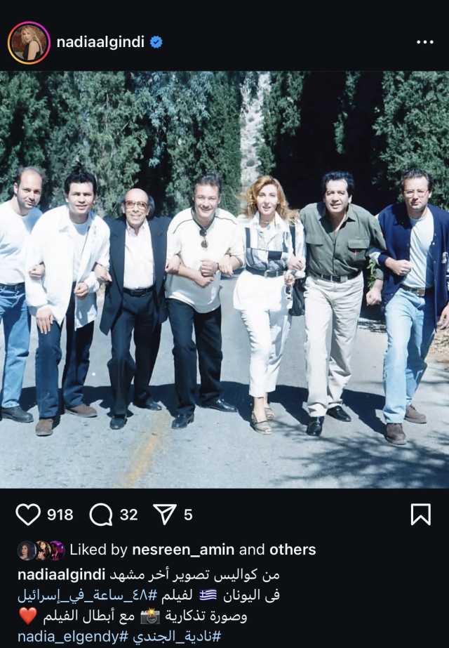 شاركت الفنانة نادية الجندي، صورة قديمة من كواليس تصوير فيلم ٤٨ ساعة في إسرائيل، عبر حسابها الشخصي بموقع إنستجرام، مع فريق العمل.