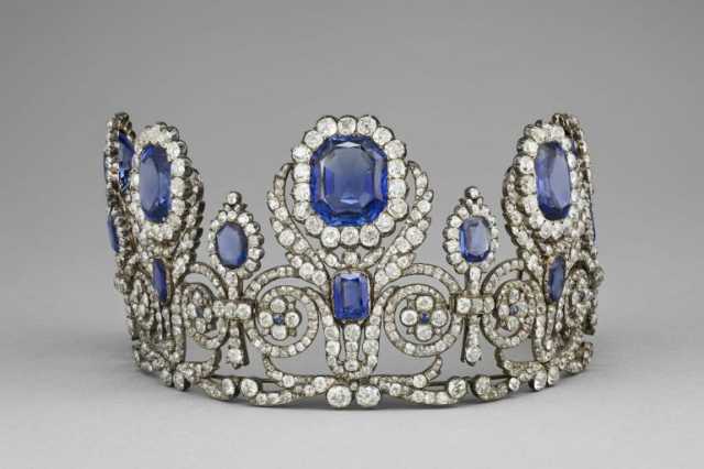 إعلانتاريخ هذا التاج يعود إلى عام 1855، وهو من تصميم ألفريد بابست. ويضم اثنتين من الألماسات الـ18 على شكل قلب التي ورثها الكاردينال مازارين عن لويس 14.