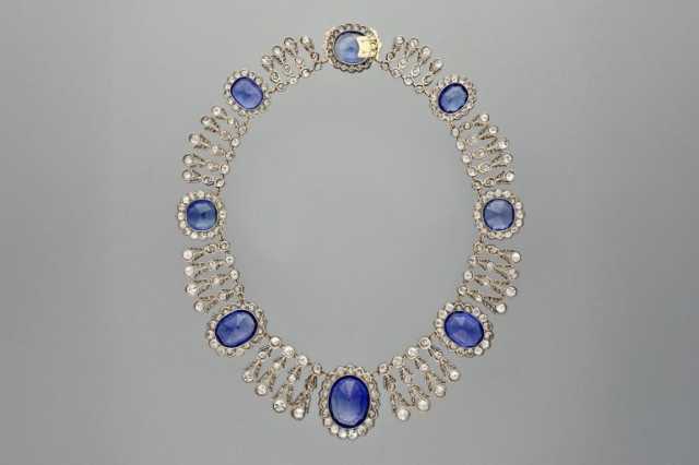 وقالت الصحيفة إن الياقوتات محاطة بألماس يبرز في إطارات ذهبية، وجميع حلقات العقد متصلة ببعضها ببعض، مما يكشف عن دقة فنية عالية.
