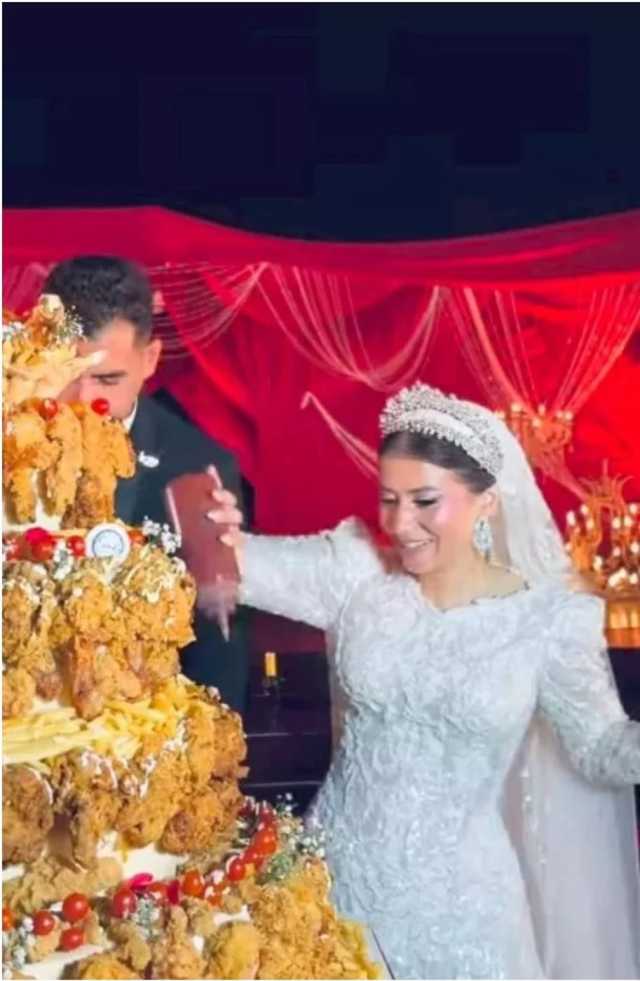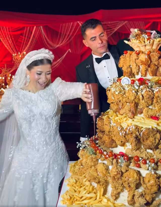 وعن "تورتة الفراخ" التي تصدّرت ترند مواقع التواصل، أوضح أنها كانت فكرة جديدة تمامًا على الجميع، وتتكون من كمية ضخمة من قطع الدجاج المقلي، قائلاً: "كانت مفاجأة بالنسبة لي ولكل المدعوين، وخلال 15 دقيقة فقط انتهت تمامًا. الناس كانت سعيدة جدًا بالفكرة، وكانت أجواء الفرح مليئة بالبهجة".