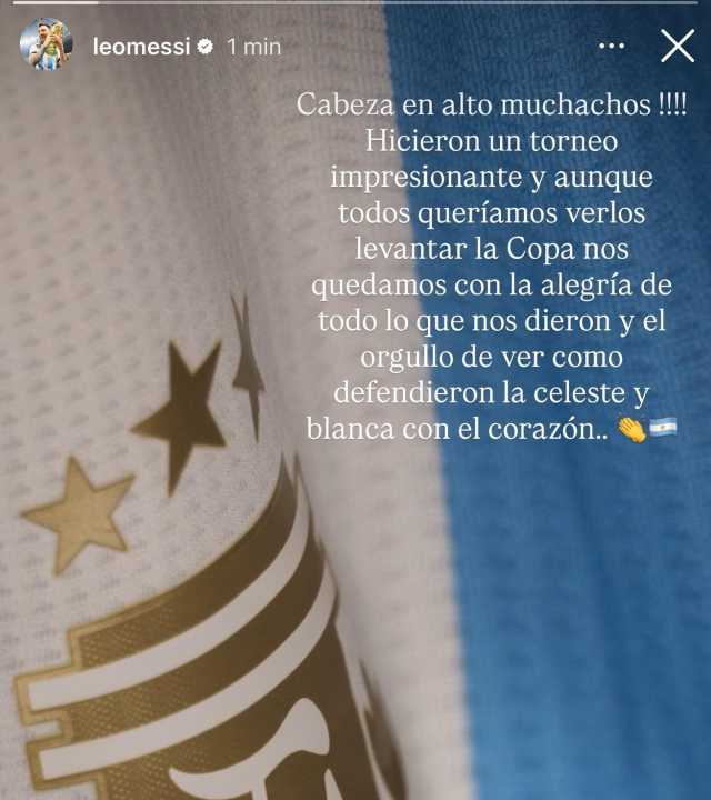 وكتب ميسي :"ارفعوا رؤوسكم يا شباب .
