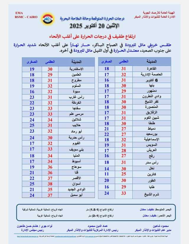 كلمات دلالية: الحرارة طقس اليوم طقس شرم الشيخ العاصمة الإدارية الصعيد ـ 31درجة الحرارة فی ـ 32درجة الحرارة فی ـ 30درجة الحرارة فی