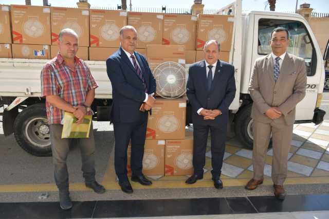 محافظ بورسعيد يقدم 100 مروحة كهربائية لمدارس المحافظة دعمًا للعملية التعليمية