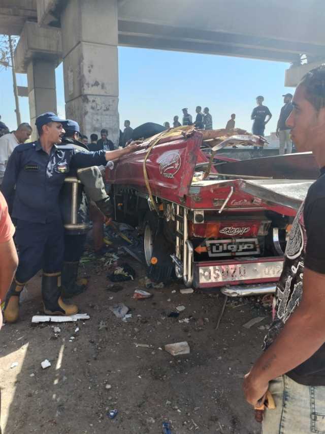 مصرع شخص وإصابة 7 في انقلاب سيارة من أعلى كوبري بالبحيرة| صور