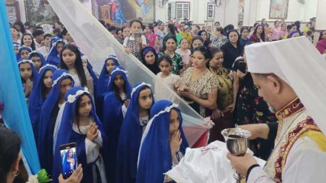 الأنبا باسيليوس يترأس قداس المناولة الاحتفالية بكنيسة القديسة تريزا بالحواصلية