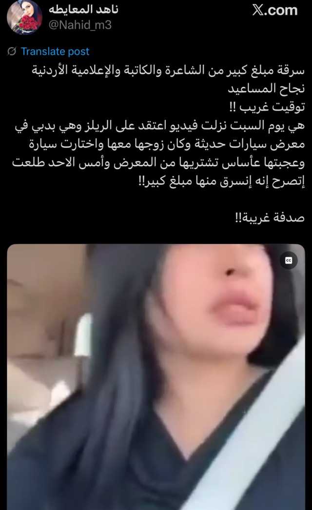 طمأنت الإعلامية الأردنية نجاح المساعيد جمهورها على صحتها بعد تعرضها لانهيار شديد في فيديوهات سابقة، حيث كشفت عن تعرضها لسرقة بقيمة 5 ملايين درهم إماراتي.