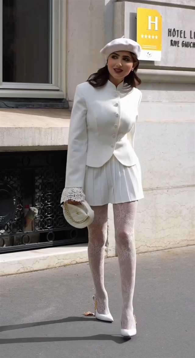 مي عمر في شوارع باريس.. إطلالة ملكية بيضاء