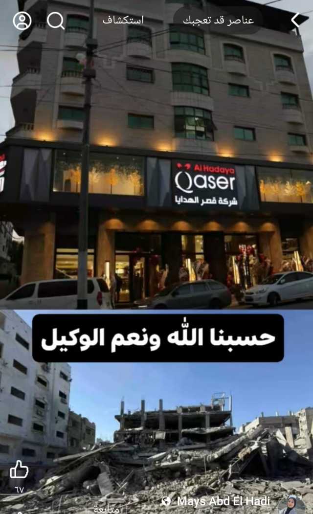 واختتمت الشاعرة الفلسطينية ميس عبد الهادي "هذا الفقد لا يُحصى، وهذا الوجع لا يُقال.. وهذا الجحيم أكل الإنسان والبنيان.. حسبنا الله ونعم الوكيل".