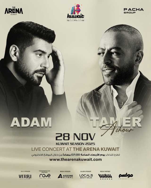 حفل استثنائي يجمع تامر عاشور وآدم بالكويت 28 نوفمبر في الأرينا