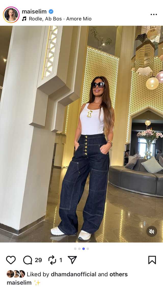 وخطفت الفنانة مي سليم، أنظار جمهورها بإطلالة جذابة لافتة بالكاجوال حيث ارتدت بلوزة كت باللون الأبيض نسقت معها بنطلون جينز ، وحازت الصورة على إعجاب متابعيها.