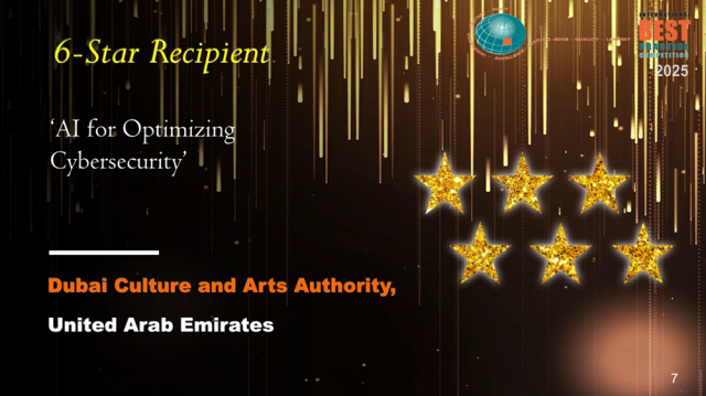 جاء هذا التكريم تتويجاً لجهود فريق «دبي للثقافة» في تطوير مجموعة من الحلول الرقمية المبتكرة باستخدام أدوات الذكاء الاصطناعي، وذلك ضمن مبادرة «الذكاء الاصطناعي لتحسين الأمن السيبراني»، التي تهدف إلى تعزيز قوة منظومة الأمن السيبراني في الهيئة، وضمان توفير بيئة رقمية أكثر أماناً، حيث أسهمت هذه الحلول في تحقيق صفر خروقات أمنية وتوفير أكثر من 14,688 ساعة عمل.