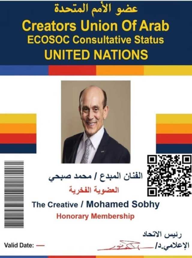 وأضاف نور أن الاتحاد قرر منح الفنان محمد صبحي العضوية الفخرية لاتحاد المبدعين العرب، وتبعيته للأمم المتحدة، ليكون ممثلًا للفن والثقافة العربية في المحافل الدولية، ويساهم في إيصال صوت المبدعين العرب إلى العالم، إيمانا بأن الثقافة والفن ركيزتان أساسيتان لبناء السلم والتنمية المستدامة.