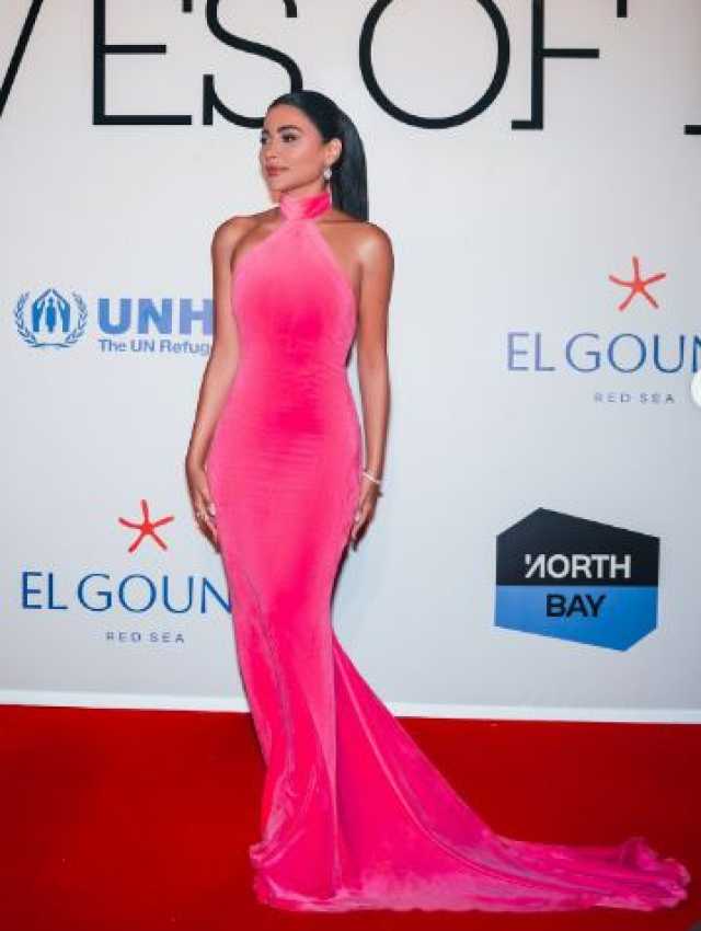 في خامس أيام مهرجان الجونة .. مهيرة عبدالعزيز تتألق بالمخمل الناعم