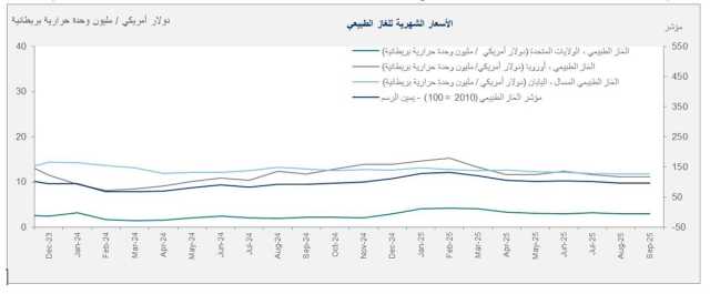 ومع ذلك، ارتفع متوسط أسعار الغاز الطبيعي الشهري في الولايات المتحدة بنسبة 32.1 في المائة على أساس سنوي في سبتمبر 2025، ليصل إلى 2.97 دولارًا أمريكيًا لكل مليون وحدة حرارية بريطانية خلال الشهر نفسه.