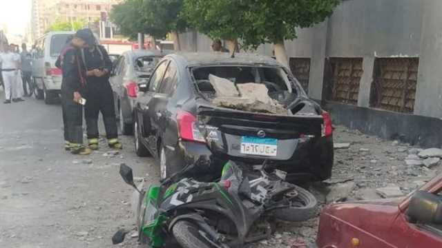انهيار جزئى لنادى مشهور بالإسكندرية وتحطم سيارتين ودراجة نارية