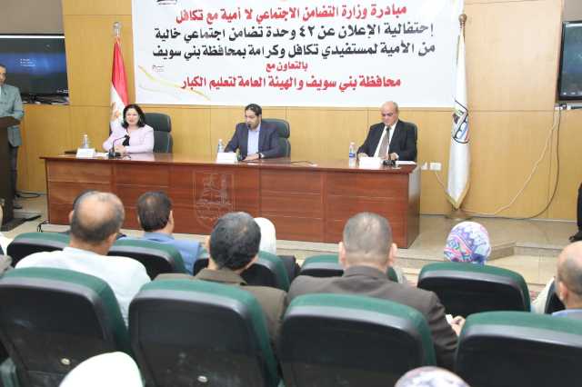 في ضوء توجيهات الدكتور محمد هاني غنيم محافظ بني سويف، عقد السيد بلال حبش، نائب محافظ بني سويف، و المهندسة مارجريت صاروفيم، نائبة وزيرة التضامن الاجتماعي،اجتماعا لمناقشة مستجدات مبادرة،"لا أمية مع تكافل" التي تستهدف محو أمية مستفيدي برنامج الدعم النقدي "تكافل وكرامة"واستعراض الموقف التنفيذي وخطط العمل المستقبلية، وذلك بحضور عدد من القيادات التنفيذية وممثلي الجهات الشريكة.