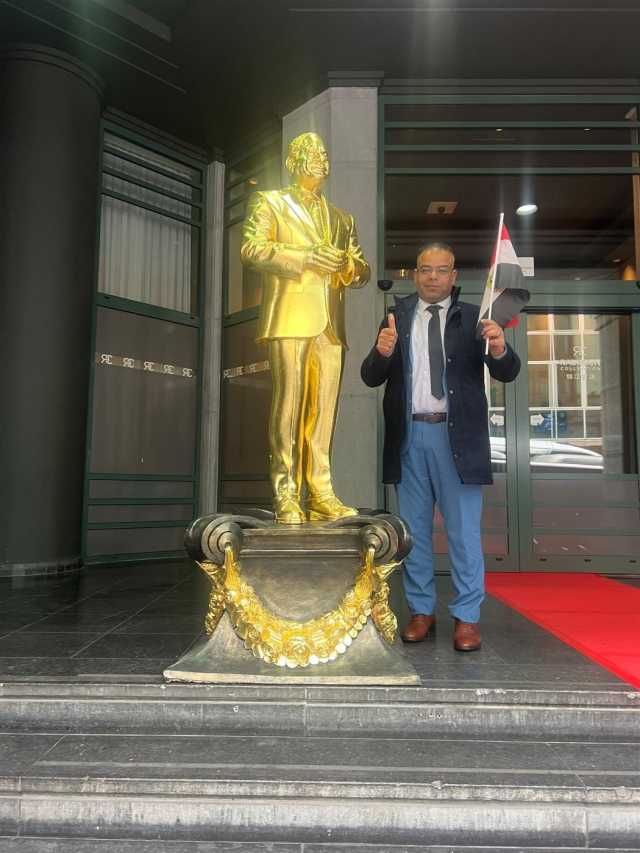 تمثال مجسم.. اتحاد شباب المصريين في الخارج يحتفلون بجهود الرئيس السيسي الوطنية.. صور
