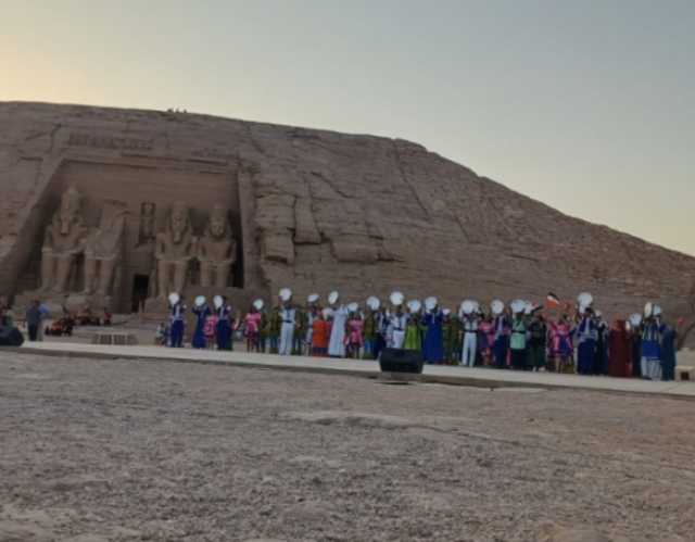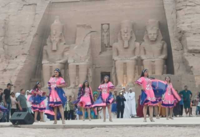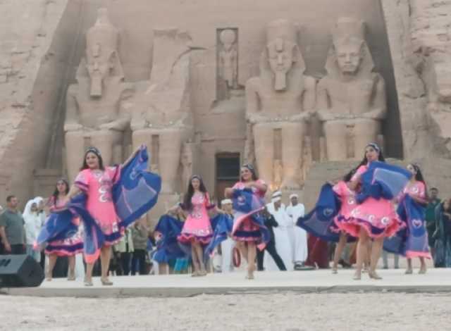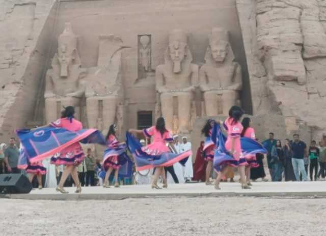 انطلقت مساء اليوم الثلاثاء من أمام معبد أبوسمبل جنوب أسوان، عروض فنية مبهرة لفرق الفنون الشعبية التابعة للهيئة العامة لقصور الثقافة، وسط حضور جماهيرى من أهالى أسوان والزوار المصريين والأجانب الذين توافدوا لمتابعة فعاليات الاحتفال بليلة تعامد الشمس على وجه الملك رمسيس الثاني.