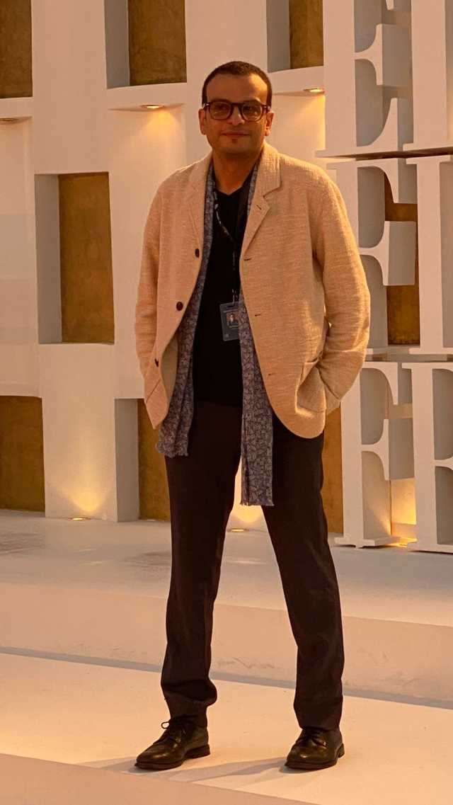 اعتمدت خبيرة التجميل اللبنانية جويل ماردينيان إطلالة لافتة بتصميم أسود للمصممة الإيطالية إليزابيتا فرانكي مطرّز بحبيبات الترتر.