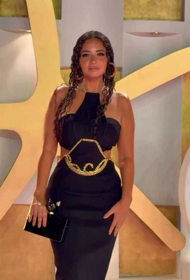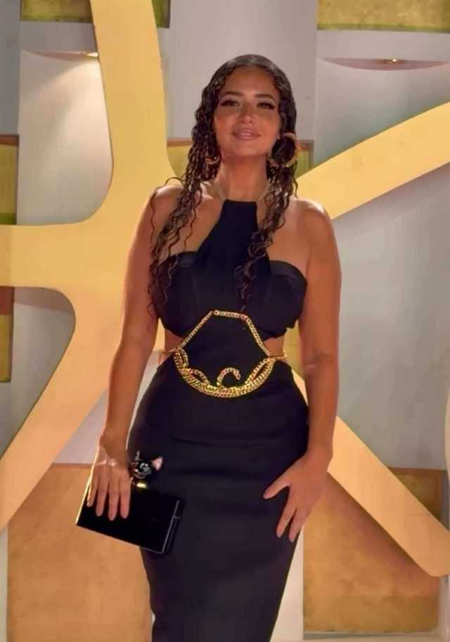 وتألقت ندى أكرم بفستان كب مثبت عند العنق، مكشوف ناحية البطن، مع تطريزات ذهبية ناحية الخصر ؛ ليبرز رشاقتها وقوامها الممشوق.