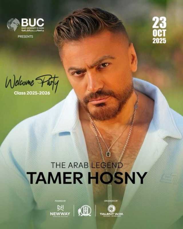 ومن المقرر أن يشهد الحفل حضورا طلابيا كبيرا ضمن فعاليات Welcome Party التي تنظمها جامعة بدر بالقاهرة احتفالا بانطلاق العام الدراسي الجديد، وسط أجواء موسيقية مميزة يقدمها نجم الجيل تامر حسني.
