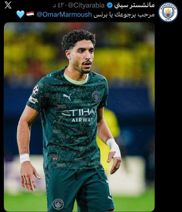 مانشستر سيتي لـ عمر مرموش بعد عودته من الإصابة: «مرحب برجوعك يا برنس»