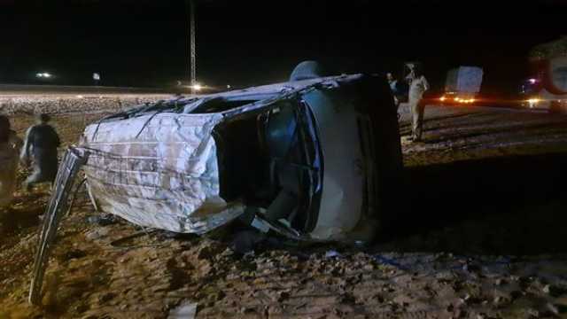 شاهد .. الصور الأولى لحادث انقلاب سيارة ميكروباص بطريق «أسوان - أبوسمبل»