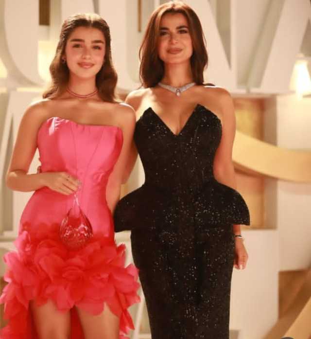 وظهرت توانا بفستان وردي فاخر بتصميم أنيق وجريء، يتميز بقصّة مميزة تُبرز جمال قوامها، مع تفاصيل براقة أضفت على الإطلالة لمسة ساحرة.