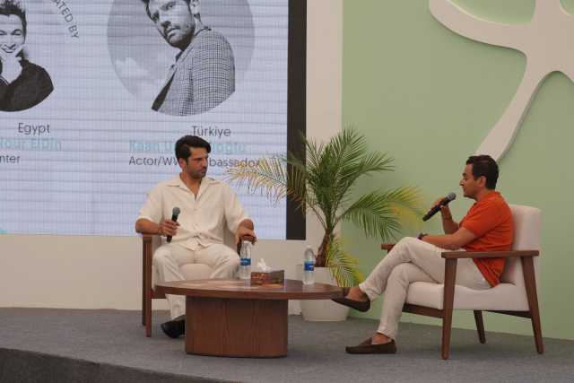 في أجواء من الودّ، استهل الإعلامي شريف نور الدين الجلسة بالترحيب بالنجم التركي قان أورغانجـي أوغلو، مشيرًا إلى أصوله العربية من جهة والدته، إذ تعود جذوره إلى سوريا عبر جده محمد علي بيه الذي انتقل إلى إزمير. وقد شكّلت هذه الإشارة مدخلًا إنسانيًا للحوار، حيث عبّر قان عن اعتزازه بهذا الإرث العائلي، معتبرًا أن تلك الجذور تمثّل جسرًا ثقافيًا وروحيًا يربطه بالعالم العربي. وأوضح أن التقارب بين تركيا والشرق الأوسط في الثقافة واللغة يشكّل أحد أهم أسباب نجاح الدراما التركية وانتشارها الواسع في المنطقة.