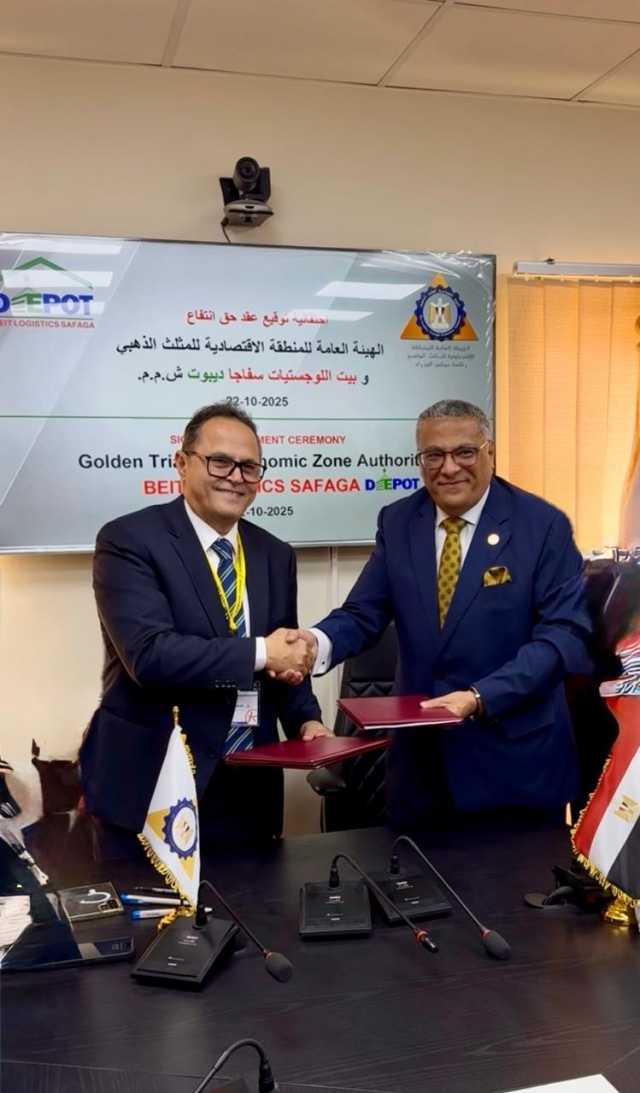 في خطوة جديدة تعكس الثقة المتبادلة بين الدولة المصرية والقطاع الخاص الوطني، شهدت مدينة سفاجا اليوم احتفالية توقيع عقد حق الانتفاع لمشروع المركز اللوجيستي المتكامل بين الهيئة الاقتصادية للمثلث الذهبي وشركة بيت اللوجيستيات – Beit Logistics، بحضور قيادات تنفيذية رفيعة المستوى من مؤسسات الدولة والقطاع الخاص.