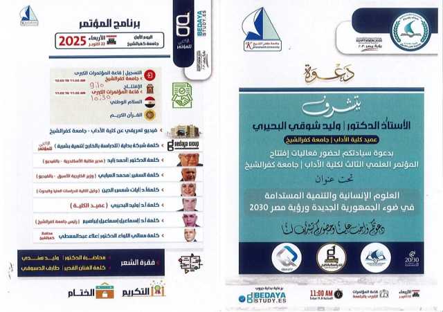 أكد الدكتور وليد البحيري، عميد كلية الآداب بجامعة كفرالشيخ، أن الكلية تسعى من خلال أنشطتها العلمية والبحثية إلى أن تكون شريكًا فاعلًا في دعم جهود الدولة لتحقيق أهداف التنمية المستدامة ورؤية مصر 2030، مشيرًا إلى أن العلوم الإنسانية تمثل ركيزة أساسية في بناء الإنسان وتنمية الوعي المجتمعي، وهو ما يتكامل مع توجهات الدولة في ظل الجمهورية الجديدة.