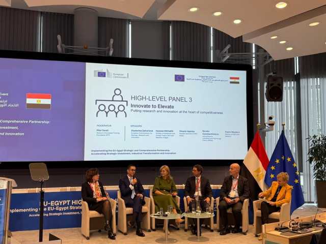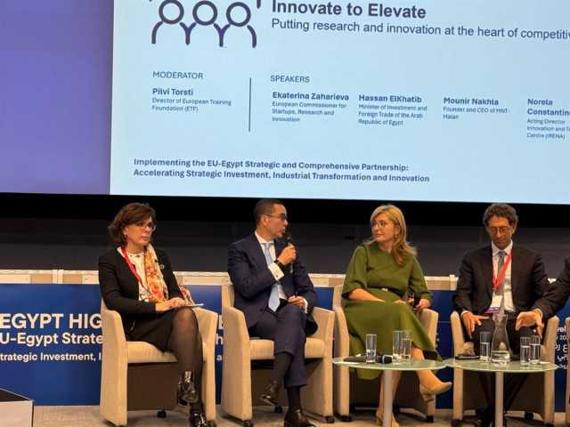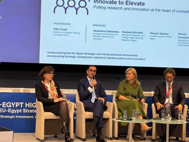 في إطار فعاليات القمة المصرية الأوروبية ببروكسل حول تعزيز القدرة التنافسية والابتكار الصناعي، شارك المهندس حسن الخطيب، وزير الاستثمار والتجارة الخارجية في الجلسة الرفيعة المستوى بعنوان "ابتكر لترتقي: وضع البحث والابتكار في قلب القدرة التنافسية"، وأدارت الجلسة بيلفي تورستي، مديرة المؤسسة الأوروبية للتدريب، وبحضور السيدة إيكاترينا زاهاريفا، المفوضة الأوروبية لشؤون الشركات الناشئة والبحث والابتكار، و منير نخلة، مؤسس و الرئيس التنفيذي MNT-Halan، و السيدة نورِيلا كونستانتينسكو، القائم بأعمال مدير مركز الابتكار والتكنولوجيا بالوكالة الدولية للطاقة المتجددة (IRENA)، وفرانك ووترز، مدير شبكة EU MED-GEM الممولة من الاتحاد الأوروبي