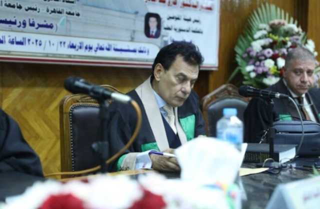 الأستاذ الدكتور جابر جاد نصار، أستاذ القانون الدستوري بكلية الحقوق جامعة القاهرة، ورئيس جامعة القاهرة الأسبق - مشرفًا ورئيسًا.