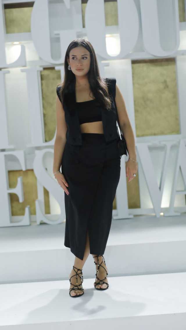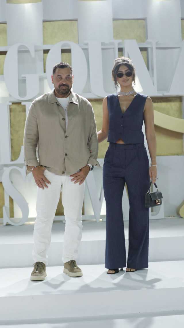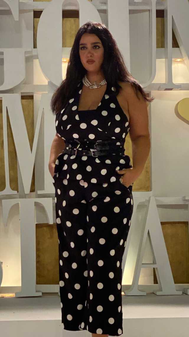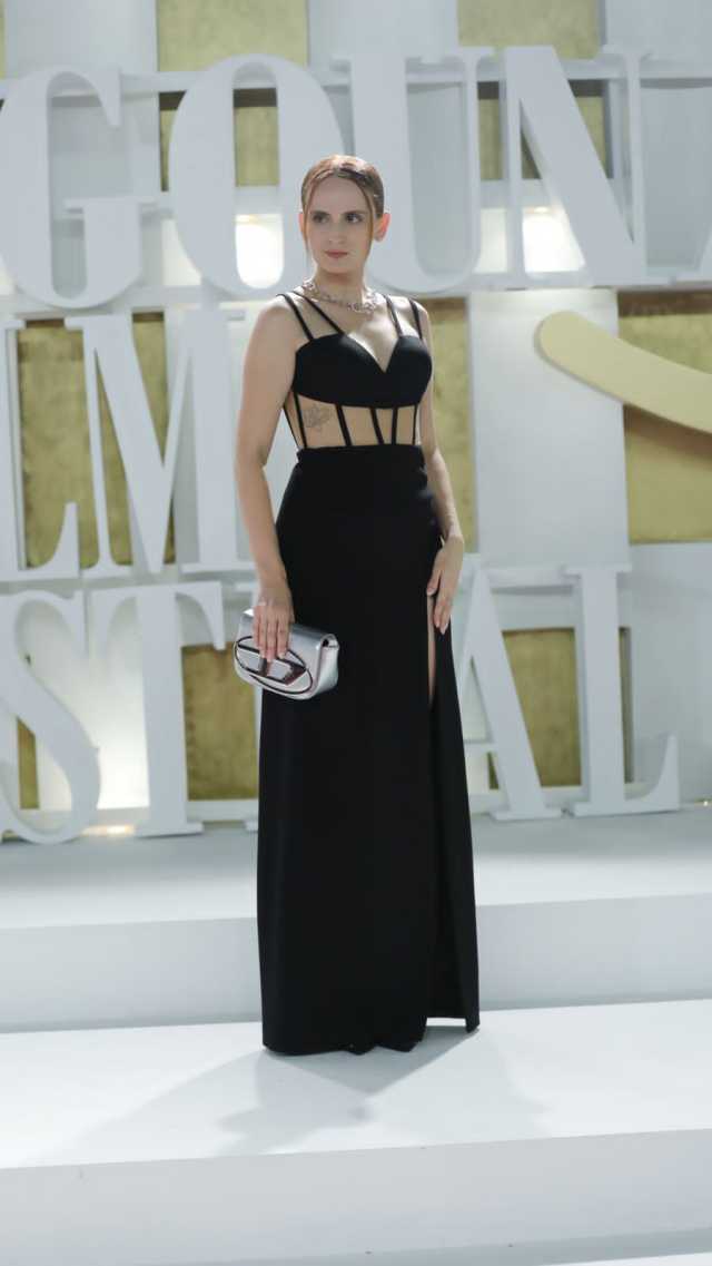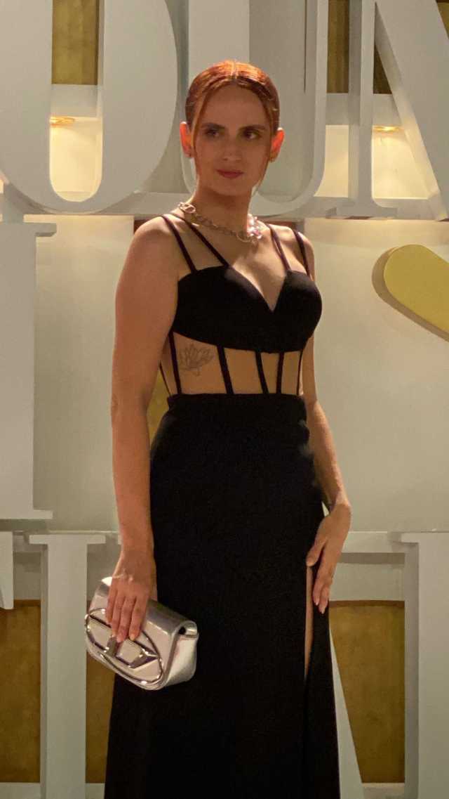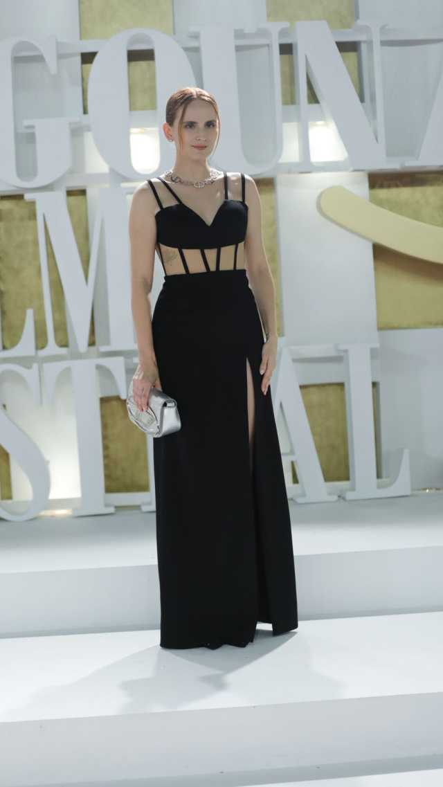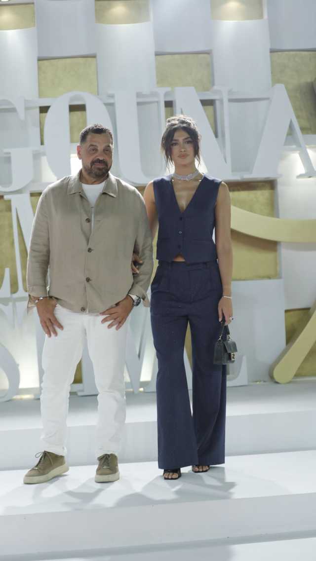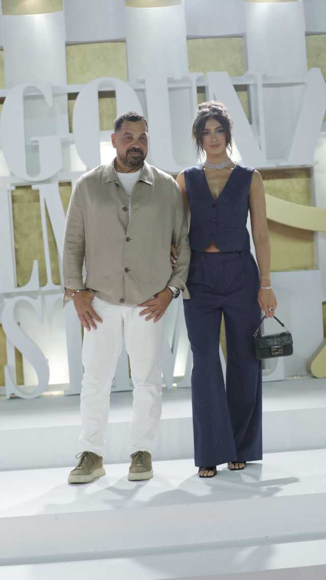وخطفت علا رشدي الأنظار رفقة زوجها الفنان أحمد داوود بإطلالة جذابة أنيقة إذ ارتدت فستان ستان باللون البني.
