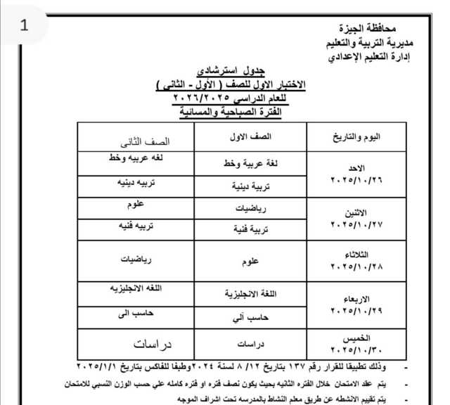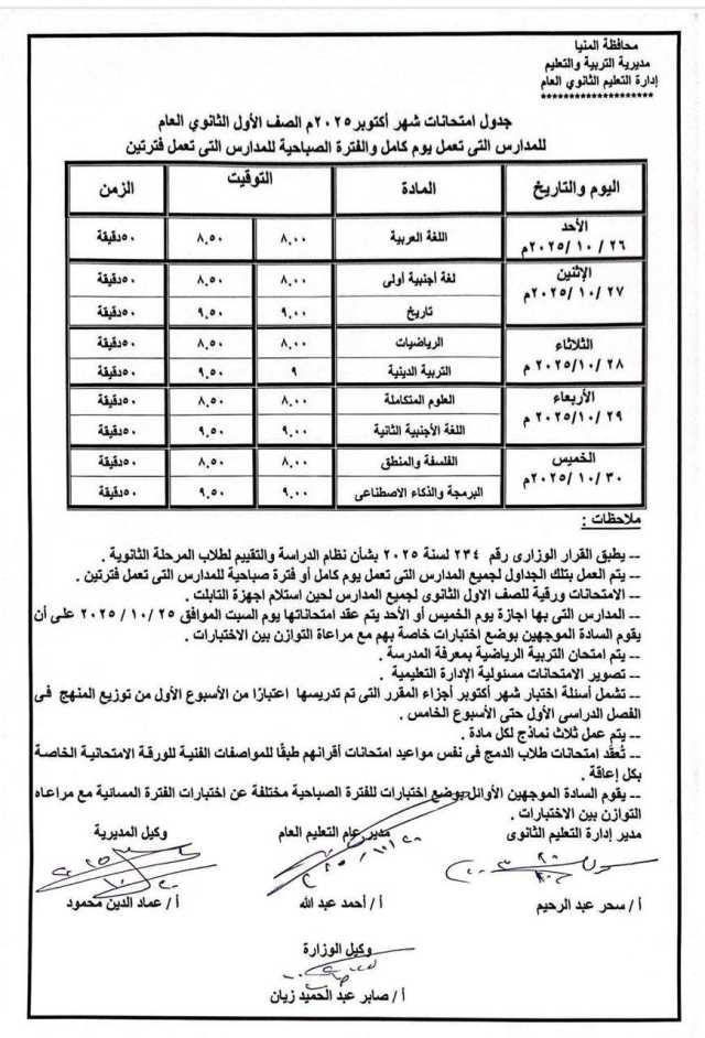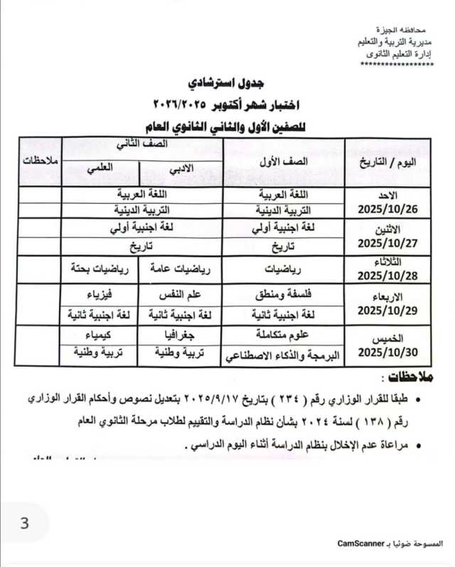 قبل انطلاقها الأحد .. ننشر جدول امتحانات شهر أكتوبر جميع المحافظات