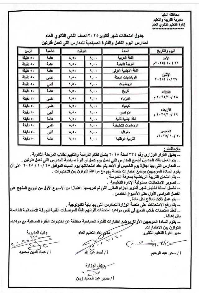 حيث أعلنت وزارة التربية والتعليم والتعليم الفني في خطاب رسمي أرسلته لمديريات التربية والتعليم ، أنه في ضوء ما جاء بالقرار الوزارى رقم (٢٣٤) بتاريخ ٢٠٢٥/٩/١٧ بتعديل نصوص وأحكام القرار الوزاري (۱۳۸) لسنة ۲۰۲٤ بشأن نظام الدراسة والتقييم لطلاب مرحلة الثانوي العام، يتعين على كافة المديريات والإدارات التعليمية والمدارس الالتزام بما يلي:
