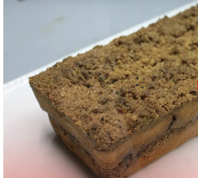 ضع بقية العجين فوقه برفق وسوِّ السطح، ثم أضف ما تبقى من الكرامبل على الوجه