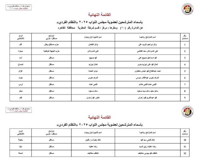 يأتي هذا الإعلان بعد انتهاء فترة فحص طلبات الترشح، والبت في الطعون المقدمة أمام محكمة القضاء الإداري، ووصول القائمة إلى الصيغة النهائية التي سيتم التنافس على أساسها.