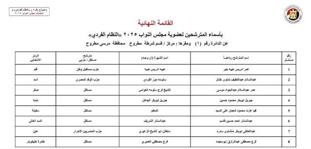 ننشر القائمة النهائية لمرشحي "فردي" النواب بمطروح