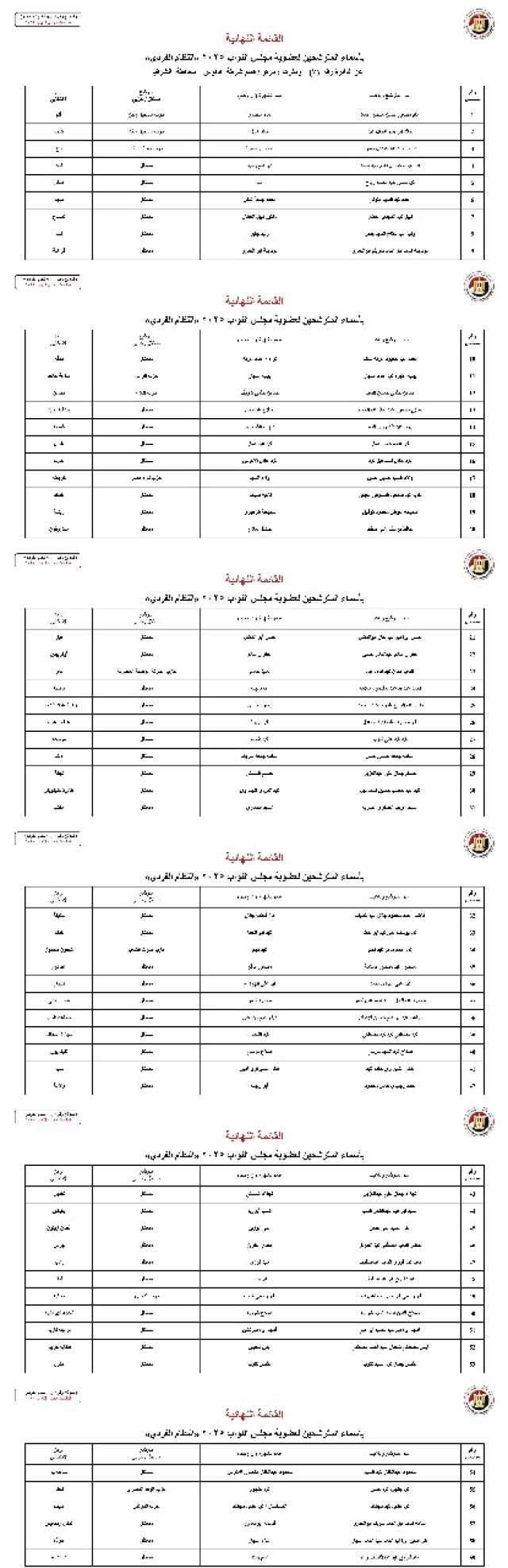 ويأتي هذا الإعلان، بعد استيفاء كافة المراحل القانونية والتدقيق الشامل لملفات الترشح، بما في ذلك الفصل النهائي في الطعون التي نظرتها محكمة القضاء الإداري، مما يُرسّخ موقف المتنافسين على المقاعد المخصصة لواحدة من أكبر محافظات الصعيد. ويُشير إصدار القائمة النهائية إلى إتمام الهيئة لدورها الرقابي والإجرائي وفقاً للجدول الزمني المعلن.