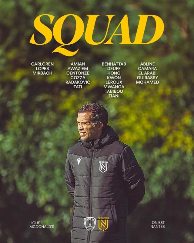 قائمة نانت لمواجهة باريس بالدوري الفرنسي.. موقف مصطفي محمد