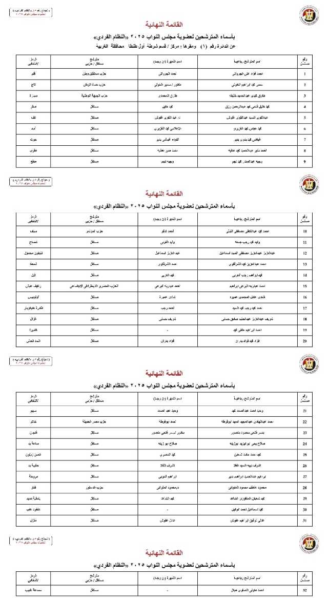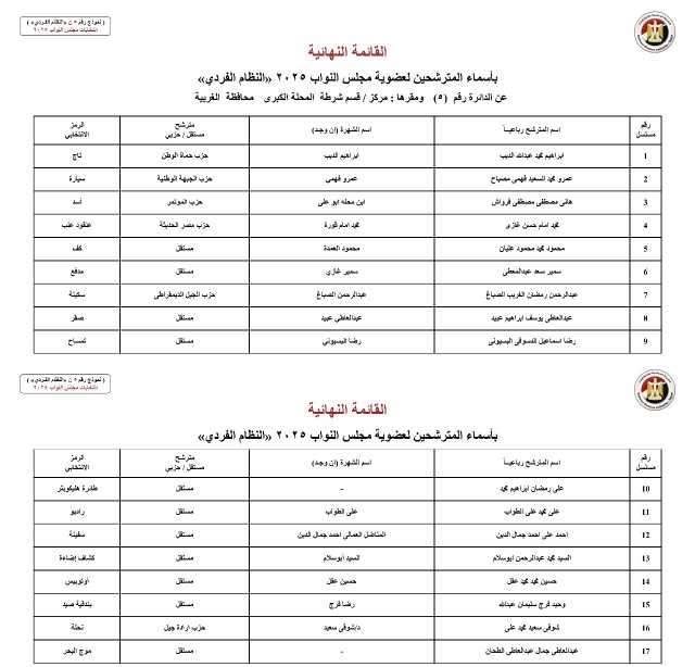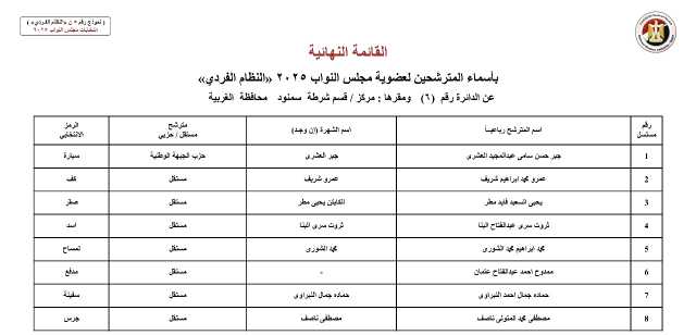 ننشر القائمة النهائية لمترشحي دوائر الغربية بالنواب عن النظام الفردي