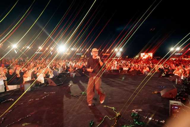 وكعادته صعد الهضبة إلى المسرح على أنغام أغنية "يا أنا يا لأ" وسط تفاعل كبير من الحضور الذين رددوا معه أغانيه على مدار الحفل.