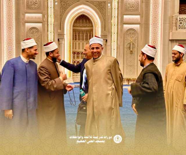 تواصل وزارة الأوقاف تنفيذ برنامجها التدريبي الأسبوعي المتميز للأئمة والواعظات بمسجد العلي العظيم بألماظة، برعاية الأستاذ الدكتور أسامة الأزهري وزير الأوقاف، في إطار خطتها الشاملة للارتقاء بالمستوى العلمي والفكري واللغوي للدعاة والداعيات.