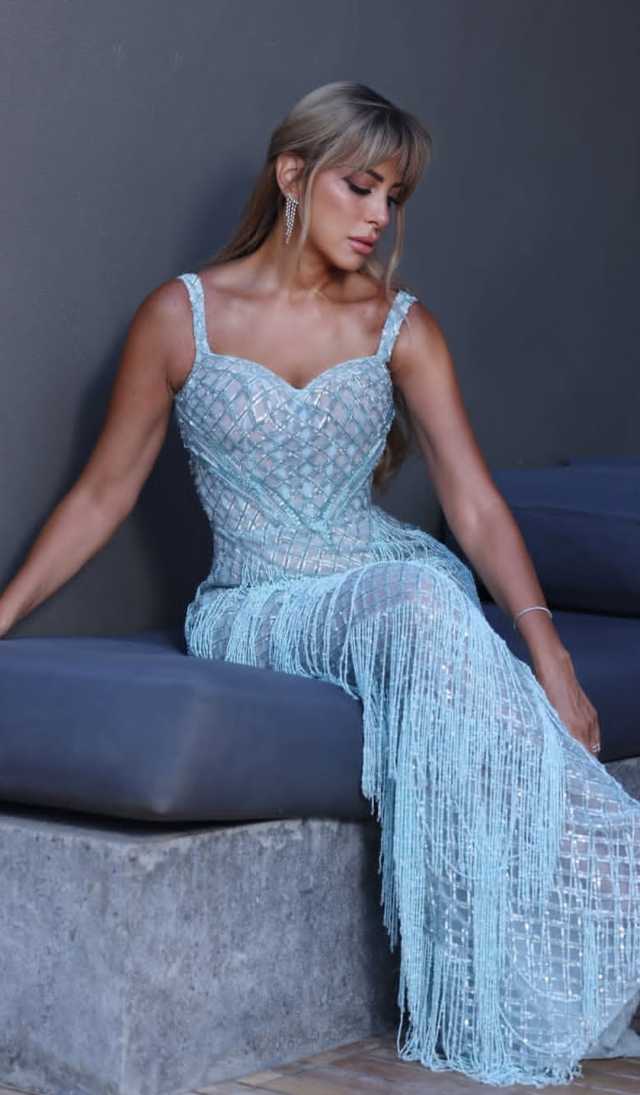 وأطلت ريم مصطفى ، مرتدين فستان طويل وأنيق باللون البيبي بلو، وجاء الفستان بتصميم بسيط وناعم ليكشف عن جمالها ورشاقتها.