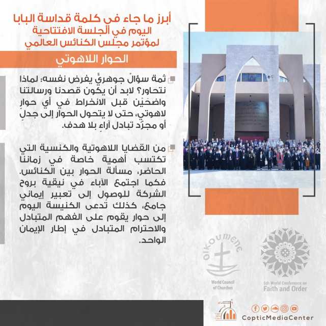 كلمات دلالية: البابا تواضروس البابا تواضروس الثاني مجلس الكنائس العالمي الكنيسة الكنيسة القبطية الأرثوذكسية الحوار اللاهوتي البابا تواضروس قداسة البابا