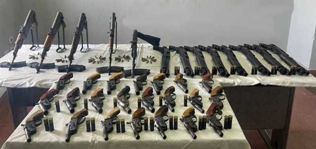 وفي مجال ضبط الأسلحة النارية والبيضاء، تم ضبط 191 قطعة سلاح ناري بحوزة 160 متهمًا، شملت رشاش جرينوف، و12 بندقية آلية، و19 بندقية خرطوش، و4 طبنجات، و155 فرد خرطوش، و327 طلقة نارية مختلفة الأعيرة، و10 خزائن متنوعة، بالإضافة إلى 303 قطعة سلاح أبيض.