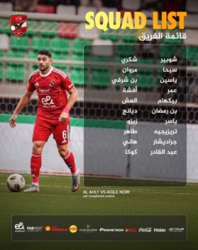 قائمة الأهلي لمواجهة إيجل نوار بدوري أبطال إفريقياحراسة المرمى: مصطفي شوبير، سيحا.