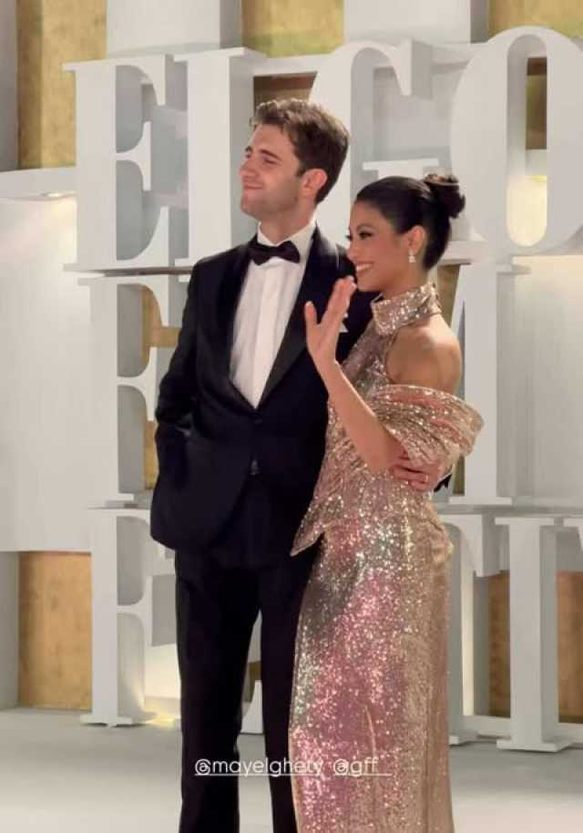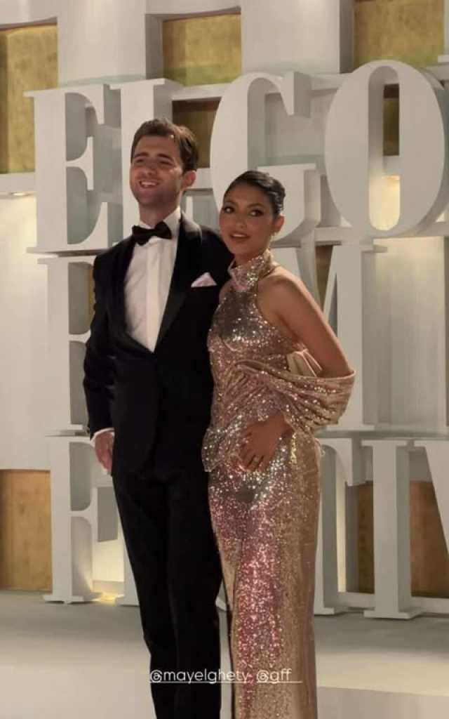 مي الغيطي وزوجها يخطفان الأنظار على السجادة الحمراء بختام مهرجان الجونة السينمائي